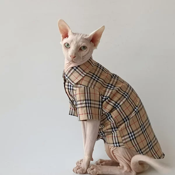 These are very small and fresh summer Sphynx cat in clothes. YESWARMG believes that every hairless cat should be cat wearing skirt The fabric of the pet cat dresses is pure cotton, anti-allergic cotton, which is very friendly to the skin of hairless cats. These pet cat dresses are not stretchy, it is recommended to buy one size larger. The pet cat dresses are very breathable. Regarding sizes, we have sizes for cats of all sizes. Please select the size according to the size chart. Find more Sphynx cat clothes.