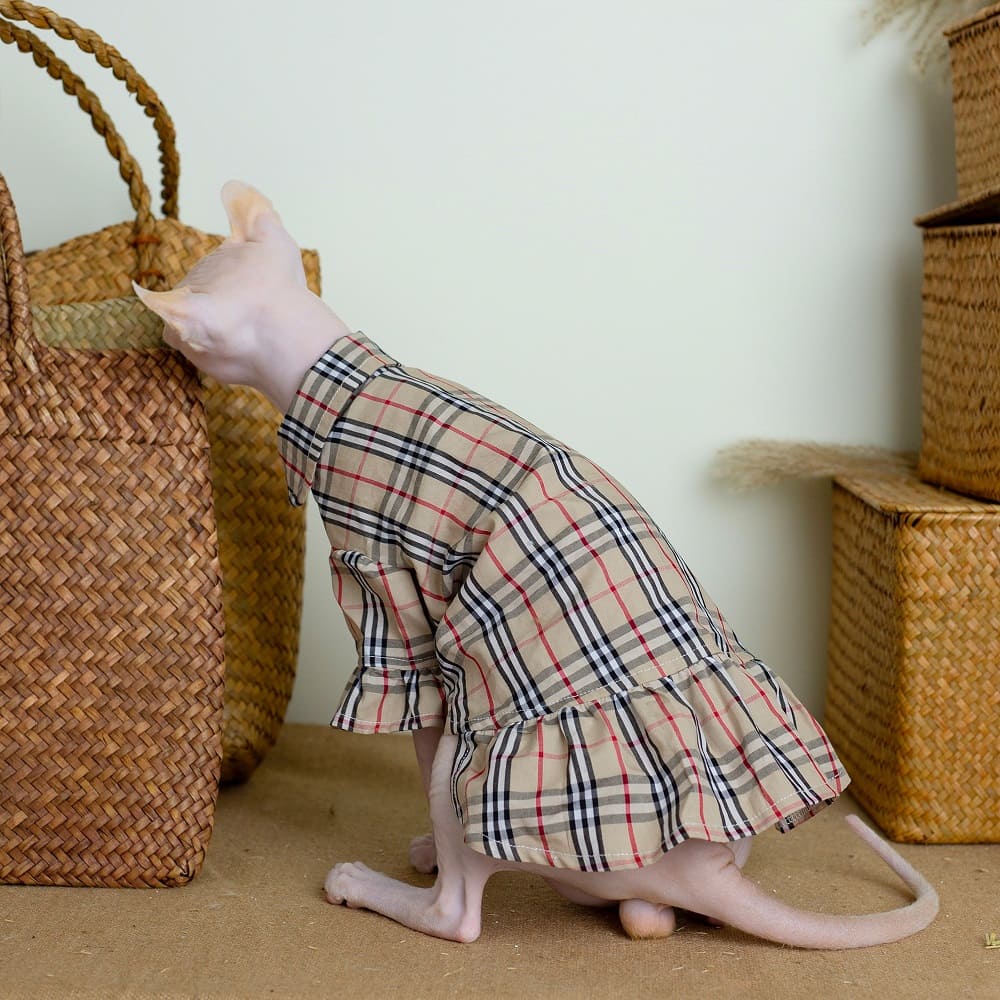 These are very stylish Burberry cat clothes. YESWARMG designed this exclusive cat clothes dress according to the style of “Burberry”, very elegant! The fabric of this cat clothing for cats is pure cotton and very stretchy. The fabric is breathable and will not cause allergies to the cat’s skin. This is a dress for spring and summer. Regarding the size, please choose the size according to the size chart. If you have questions, please contact us. Find more Sphynx cat clothes.