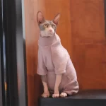 This is a very simple turtleneck for cat. The fabric of the sweater is 93% polyester, 7% spandex. The fabric is safe and will not cause allergies to the skin of hairless cats. These sweaters for hairless cats are very thick and suitable for hairless cats in autumn and winter. And these sweaters for your cat come in three colors, pink, blue, and grey. Three colors are also suitable to wear as a base shirt. these sweaters for your cat are four-legged and have an anti-shedding effect. On the collar and sleeves of the sweater, we have designed elastic bands. Find more Sphynx cat clothes.